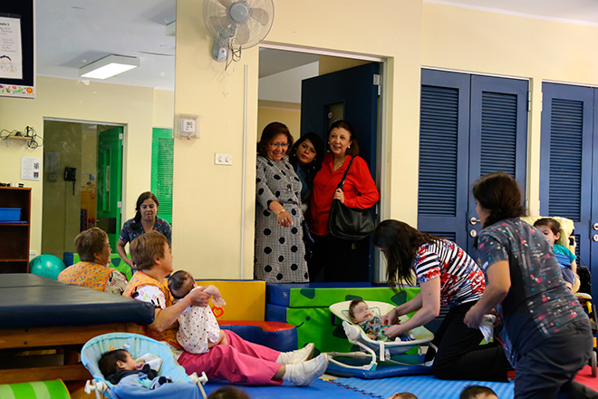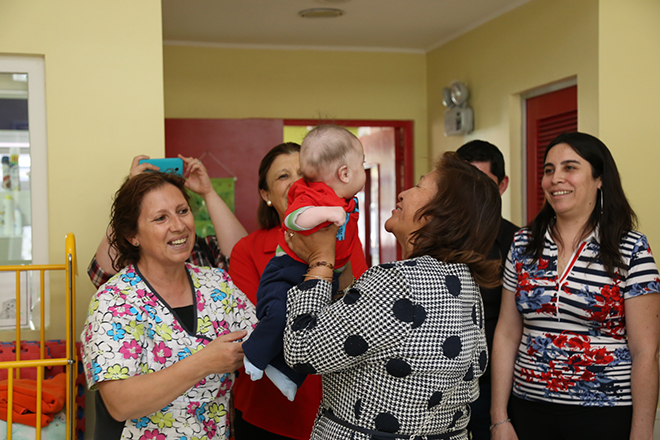 En el centro de protección de lactantes y niños administrado directamente por el Sename, la ministra Choquehuanca y su delegación, fue recibida por el director regional Metropolitano (s), Javier López; la directora de Casa Nacional, Katherine Molina; y Gloria Sepúlveda, jefa de la Unidad de Relaciones Internacionales del Sename, entre otros miembros de la institución.
