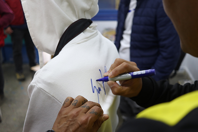 La visita permitió a los asistentes conocer de cerca la historia de esfuerzo y superación de Humberto Suazo, quien intercambió con sus experiencias relacionadas con el fútbol y la vida. El goleador conversó de manera cercana con los jóvenes, escuchando sus historias y relatando los desafíos que enfrentó a lo largo de su carrera deportiva.