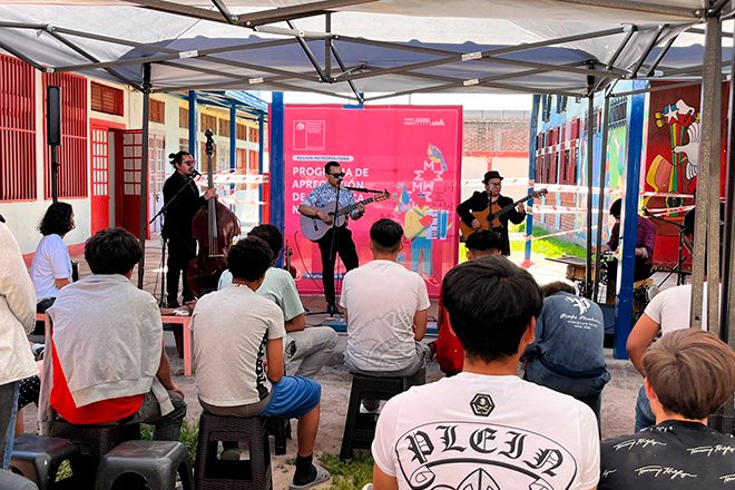 El Centro de Internación Provisoria (CIP) San Bernardo puso el broche de oro a su Programa de Apreciación de la Música Nacional (PAMN), con un vibrante concierto a cargo de la banda “La Nueva Imperial”. La presentación, que llenó de ritmo la Casa 4 del centro, fue el colofón de un ciclo formativo que buscó acercar la cultura y la identidad musical chilena, logrando una alta participación por parte de los jóvenes.